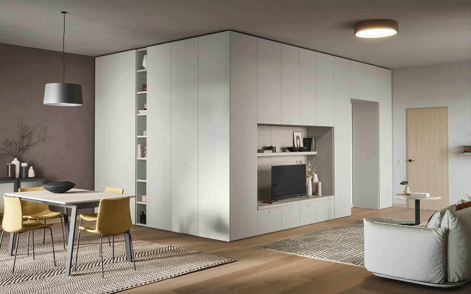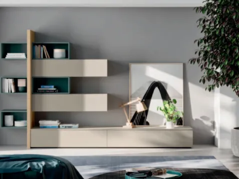 Se vuoi completare un soggiorno pratico e dinamico dalle linee moderne, ti offriamo la parete attrezzata Parete Attrezzata 05C Cinquanta3.