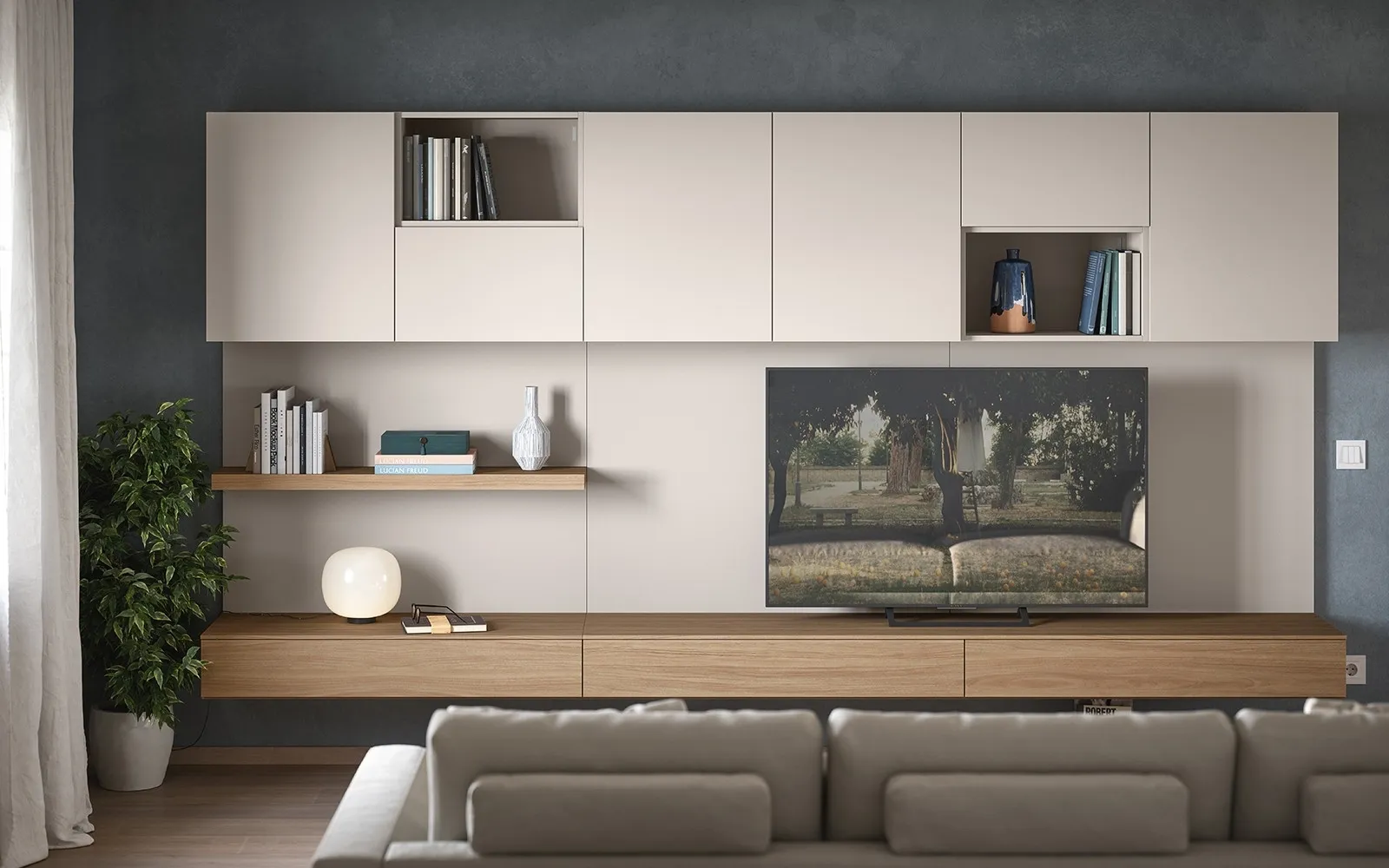 Se cerchi arredi salvaspazio e realizzabili su misura per te, contattaci e scopri di più sull'Arredamento Casa dei migliori produttori. Un po’ librerie, un po’ mobili contenitori ed espositori: le Pareti Attrezzate sono ideali per attrezzare un luogo dinamico e operativo. La Parete Attrezzata con base sospesa 06B di Cinquanta3 nell'immagine, realizzata in melaminico, risolve le più particolari esigenze abitative di spazio e stile senza rinunciare alla ricerca stilistica. Anche in un living abbastanza piccolo, questo tipo di arredo riesce a ottimizzare gli spazi valorizzando ogni angolo e garantendo grandi doti di componibilità tipica delle soluzioni moderne. Questa soluzione rappresenta tutta la qualità che il brand assicura grazie a pluriennale competenza e grande dedizione nel campo dell'arredo e del design.