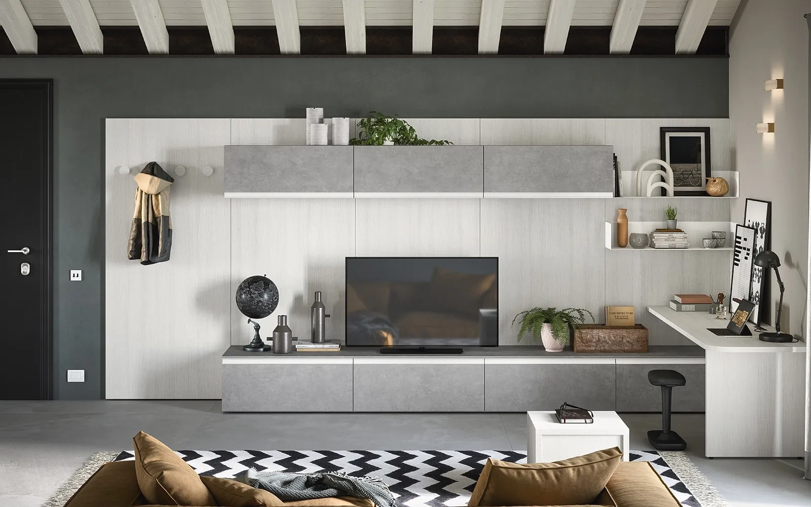 Questo modello costituisce tutta la qualità che il marchio garantisce grazie a pluriennale competenza e grande passione nel campo dell'arredo e del design. Se cerchi arredi salvaspazio e realizzabili su misura per te, contattaci e ottieni informazioni sull'Arredamento Casa dei migliori brand. Un po’ librerie, un po’ contenitori ed espositori: le Pareti Attrezzate sono ideali per sistemare uno spazio dinamico e operativo. Anche in un living abbastanza piccolo, questo tipo di arredo riesce a organizzare al meglio gli spazi ottimizzando ogni angolo e assicurando componibilità personalizzabile tipica delle soluzioni moderne. La Parete Attrezzata 06D di Cinquanta3 nell'immagine, realizzata in melaminico, risolve le più particolari esigenze abitative di spazio e stile senza rinunciare alla ricerca stilistica.