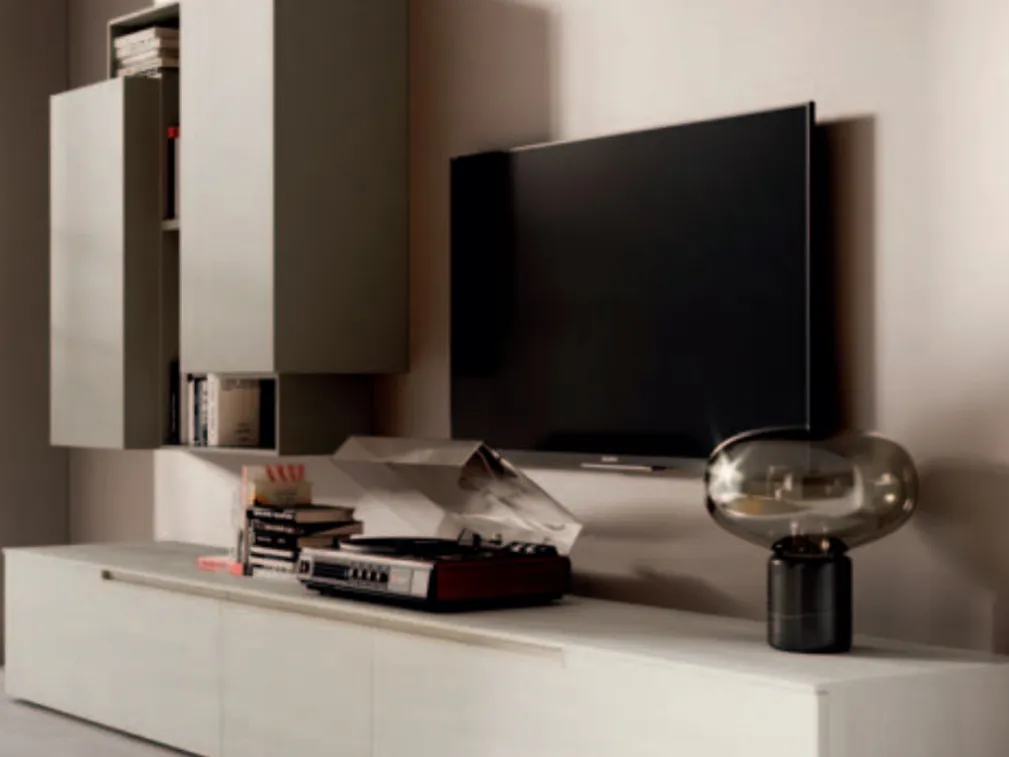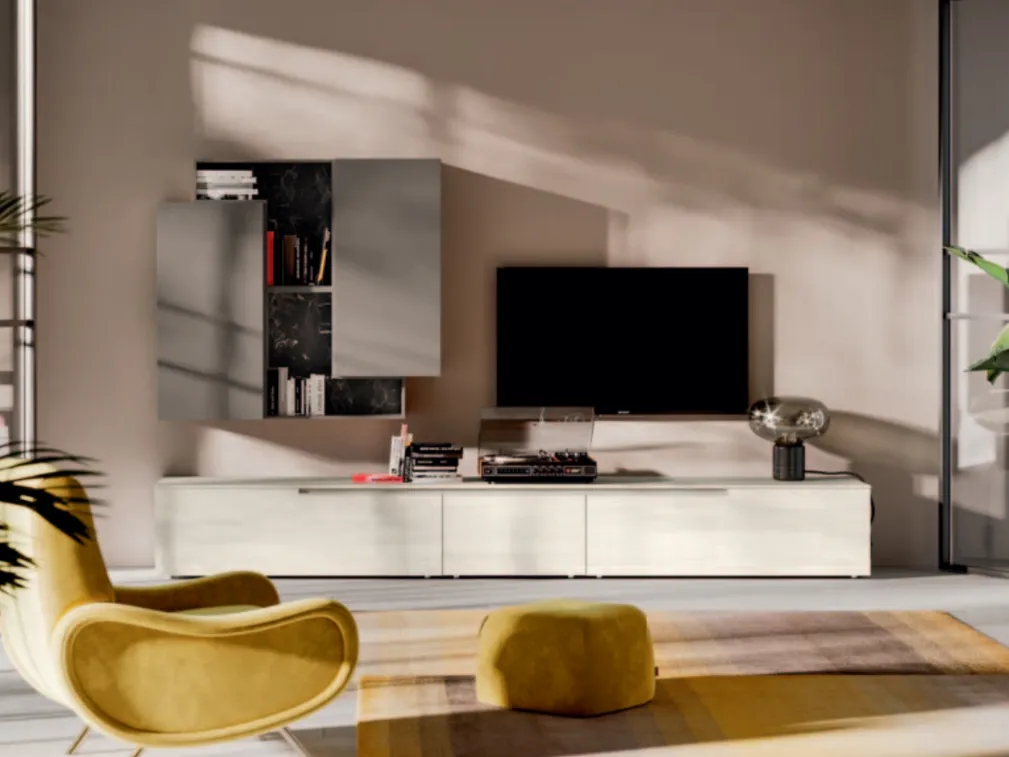 Vuoi allestire un living operativo e pratico? Ti offriamo la parete attrezzata Day 05 Orme dalle linee decise moderne.