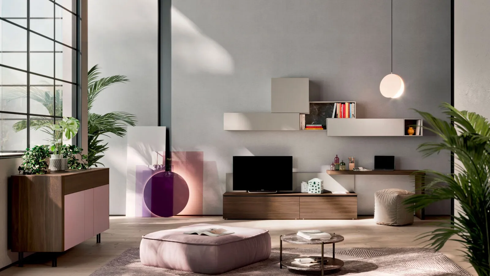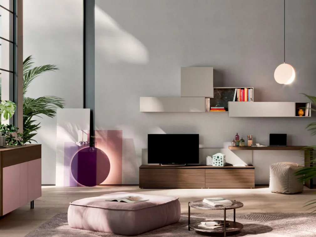 Vuoi progettare un soggiorno dinamico e operativo? Ecco a te la parete attrezzata Day 19 Orme dalle linee decise moderne.