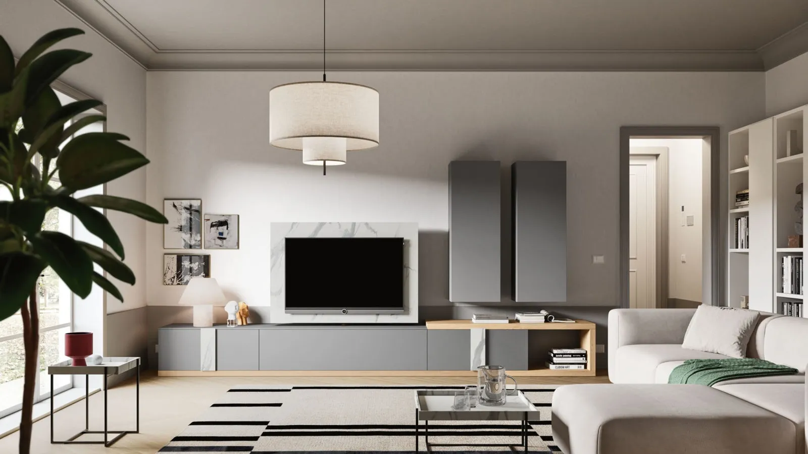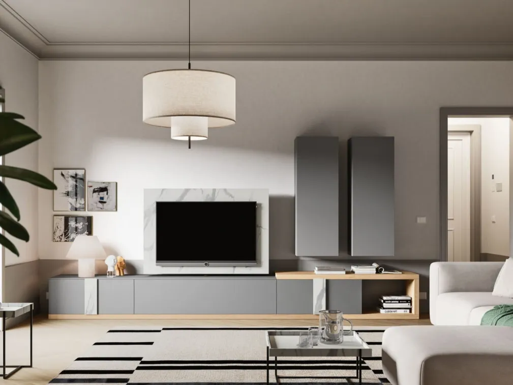 Vuoi ammobiliare un living operativo e pratico? Ecco a te la parete attrezzata Day 36 Orme dalle forme decise moderne.