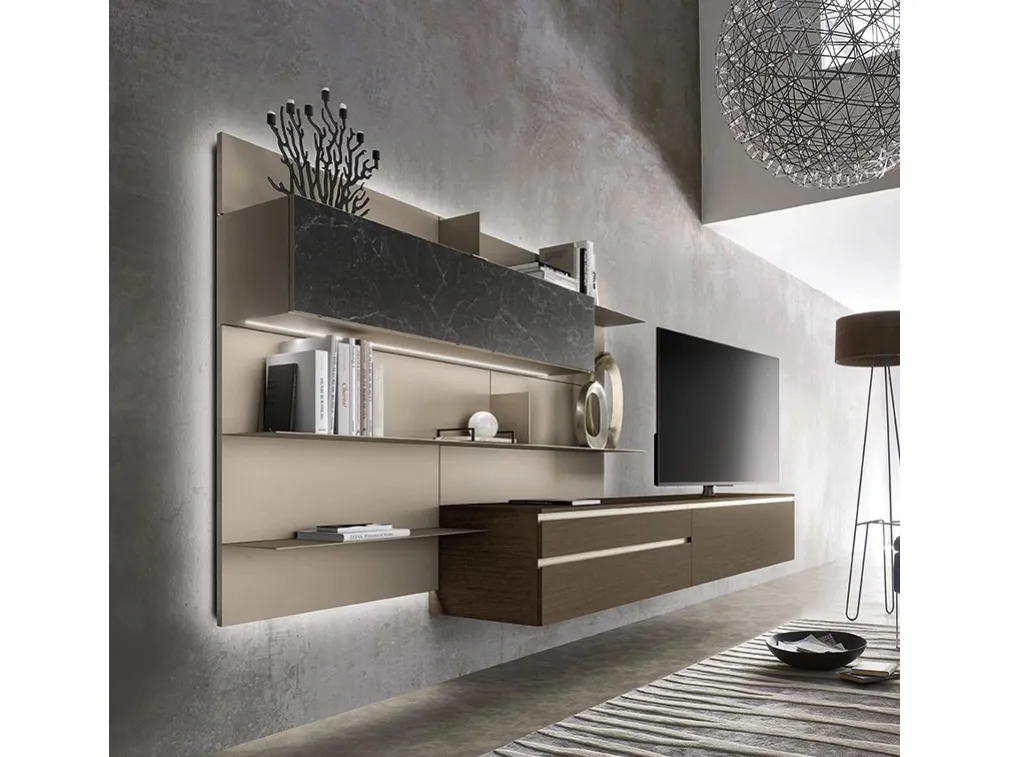 Se vuoi completare un living dinamico e operativo dalle linee moderne, ti presentiamo la parete attrezzata Lampo 017 Sangiacomo.