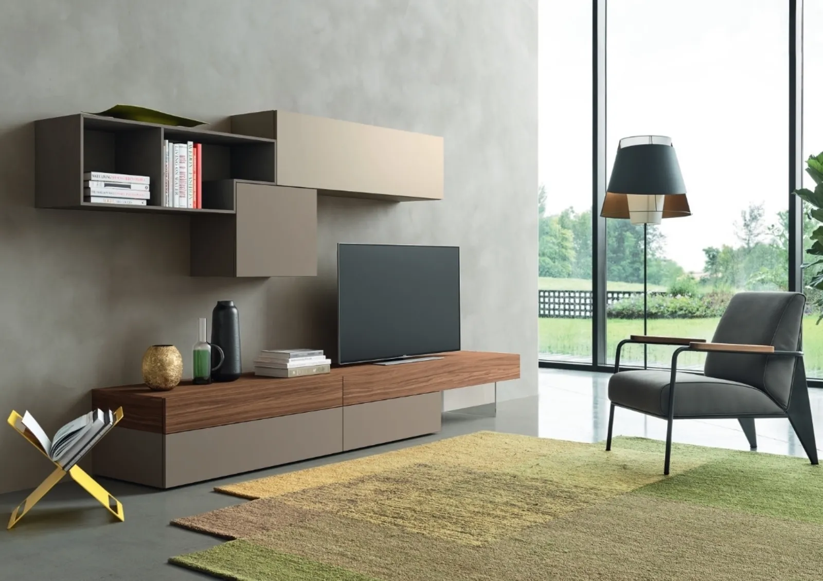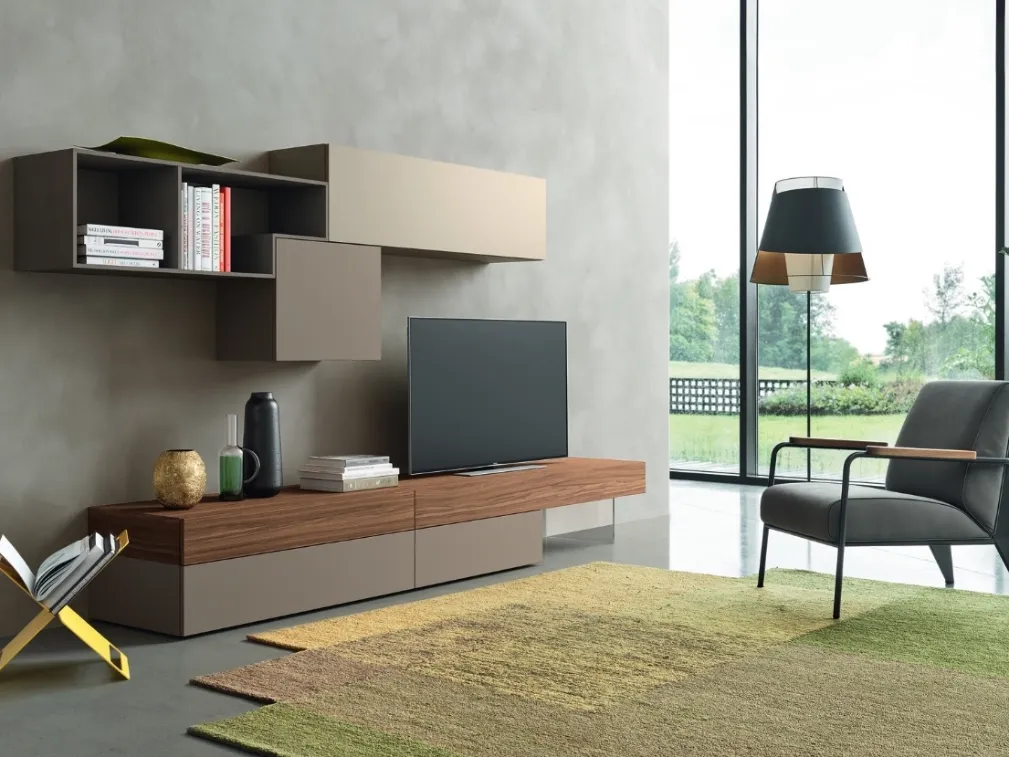 Vuoi ammobiliare un soggiorno operativo e pratico? Ti presentiamo la parete attrezzata Lampo L6C06 Sangiacomo dalle forme decise moderne.