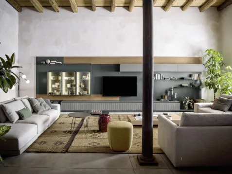 Se desideri completare un living pratico e dinamico dalle linee moderne, ti offriamo la parete attrezzata Lampo L6C12 Sangiacomo.
