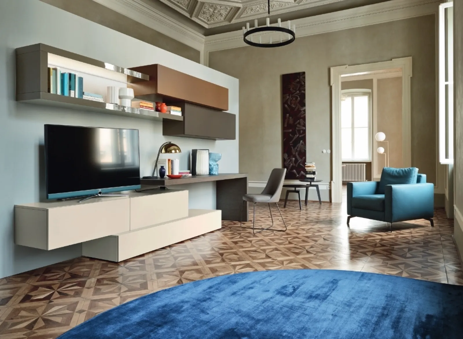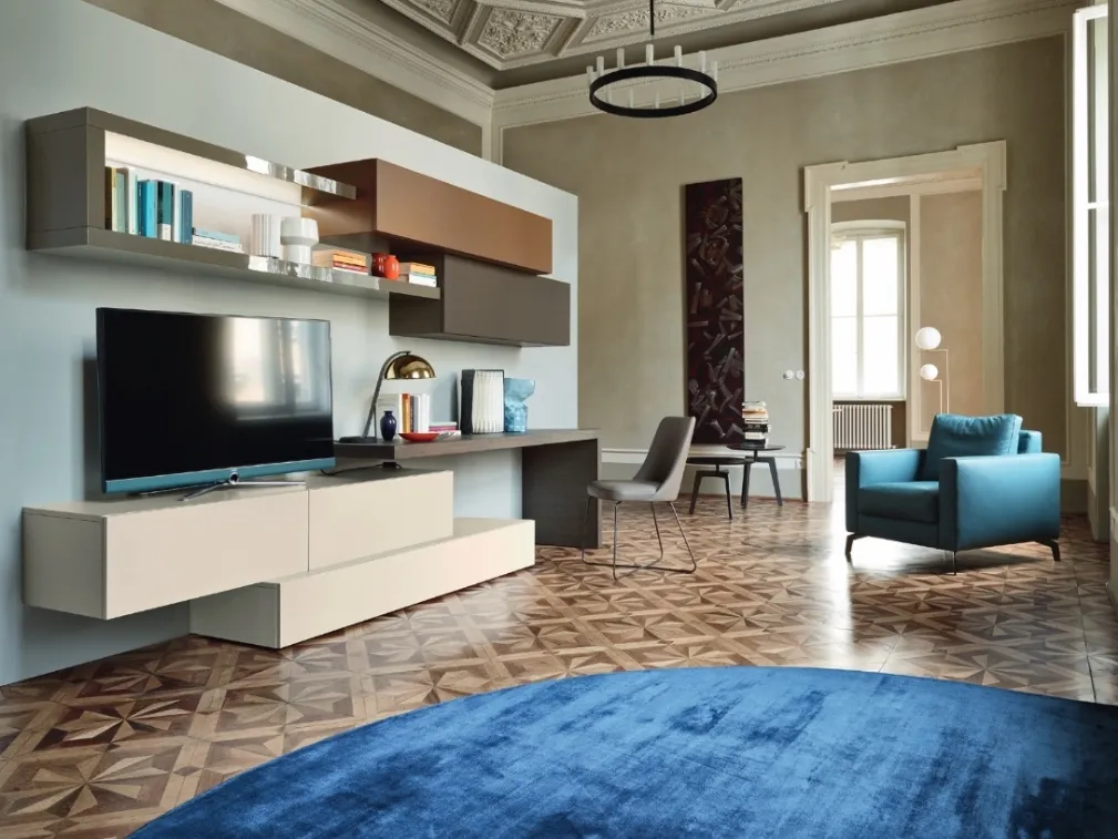 Clicca e scopri di più sulla parete attrezzata Lampo L6C23 del marchio Sangiacomo: è la soluzione dalle linee moderne perfetta per te.