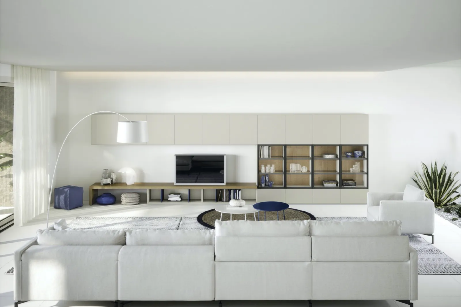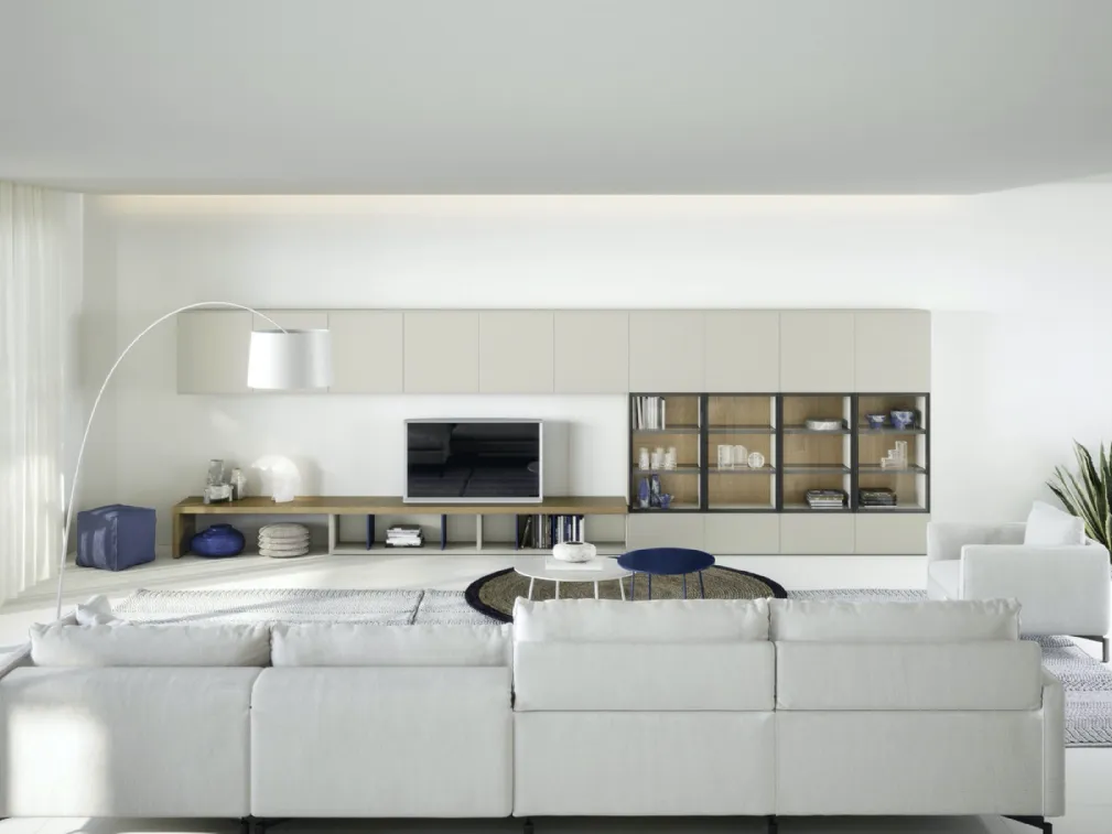 Se vuoi completare un living dinamico e operativo dalle linee moderne, ecco a te la parete attrezzata Mensole e piani a muro Novamobili.