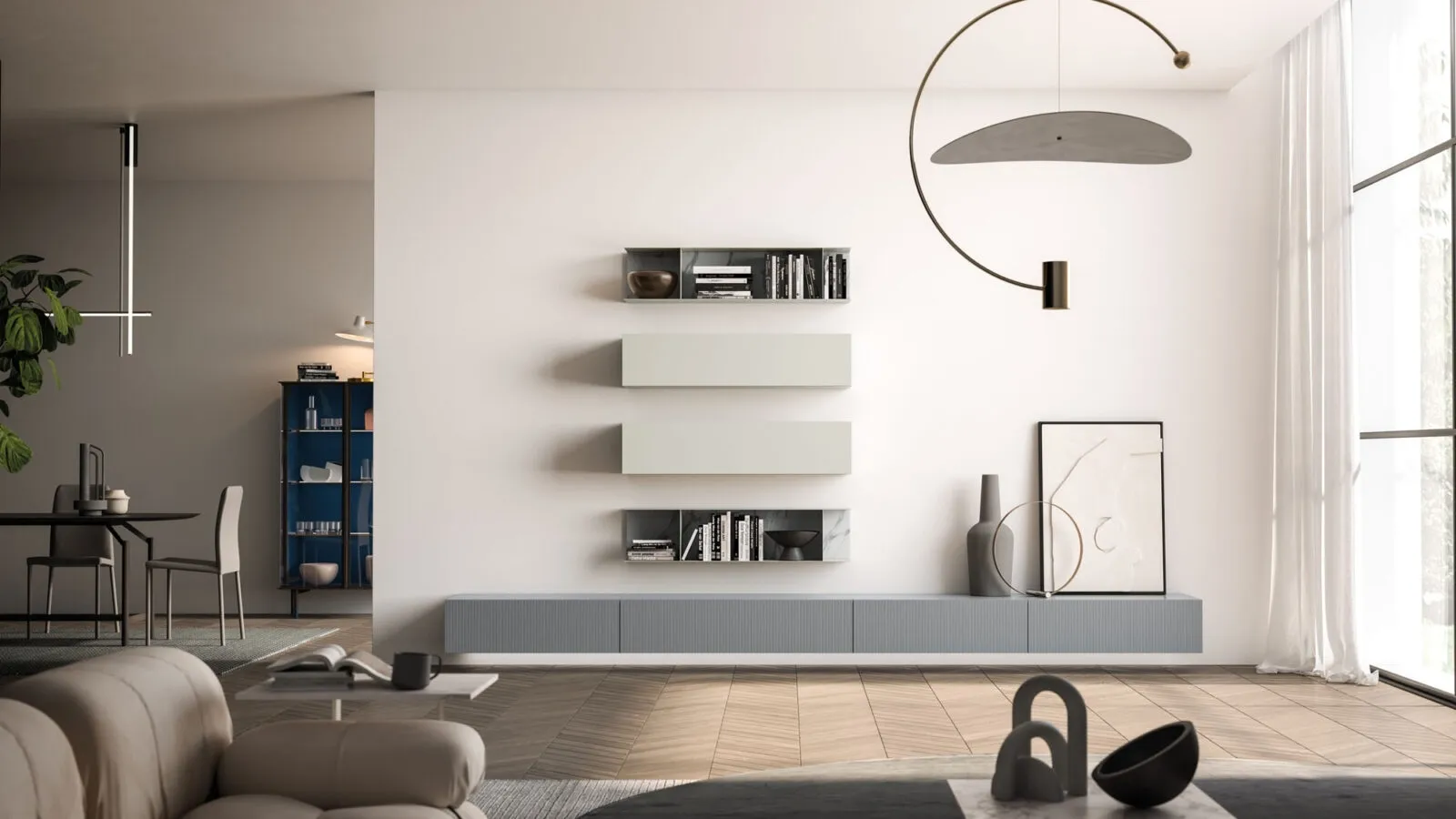Pareti attrezzate e mobili soggiorno Orme: clicca e scopri il modello Modulo Day 04 e potrai completare stanze moderne di ogni genere.