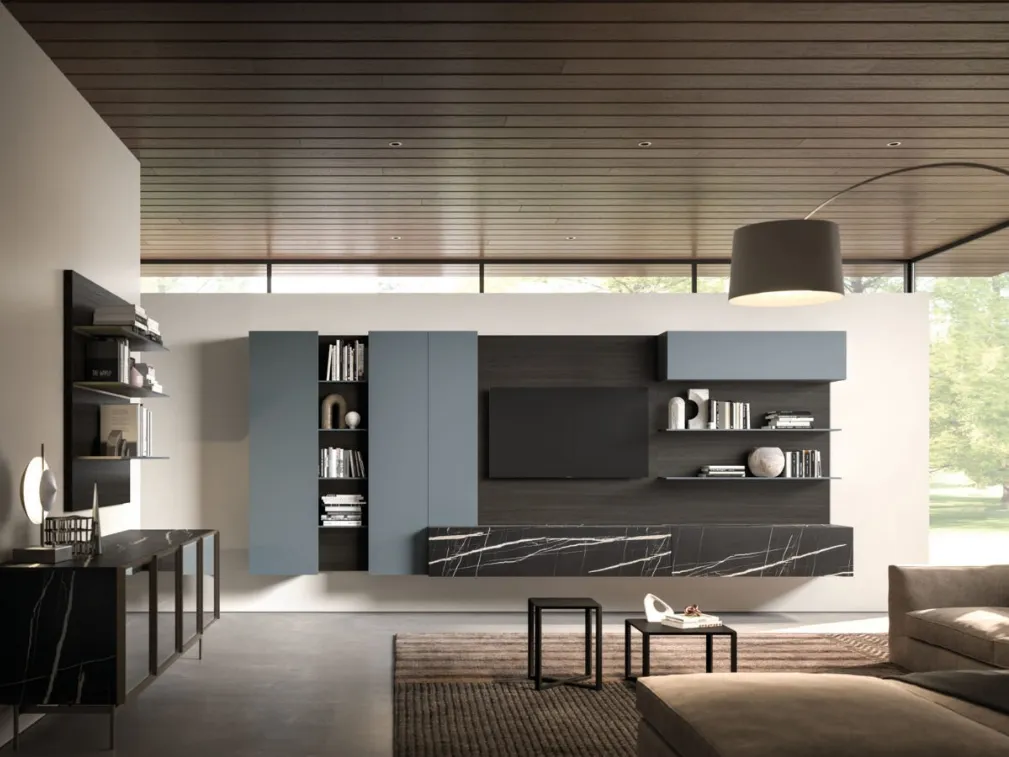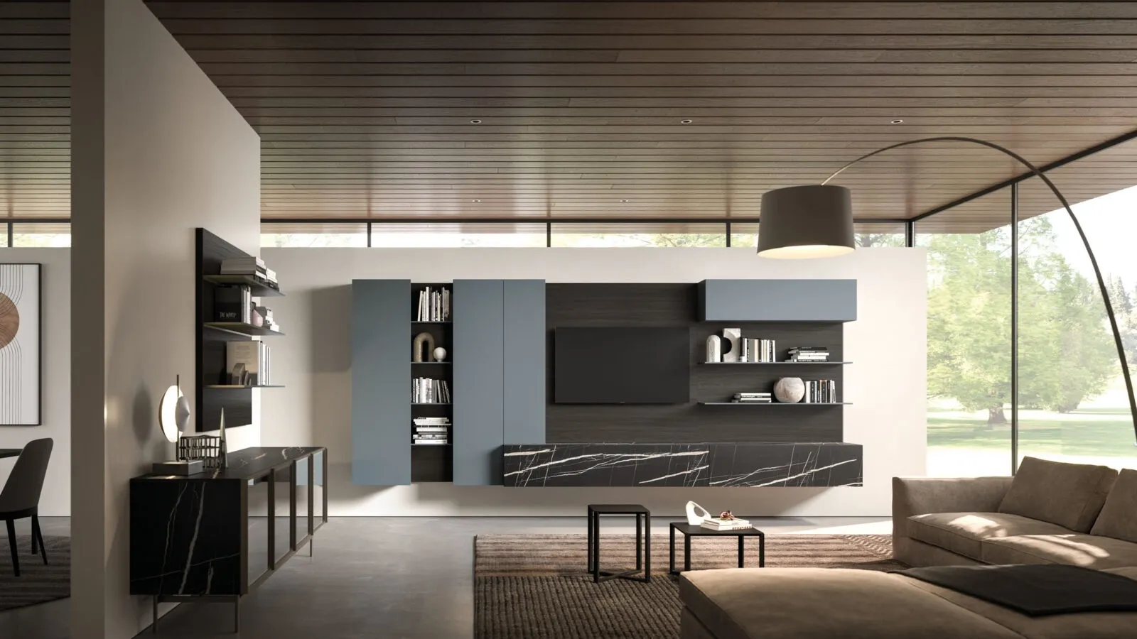 Vuoi arredare un living operativo e pratico? Ti presentiamo la parete attrezzata Modulo Day 11 Orme dalle forme decise moderne.