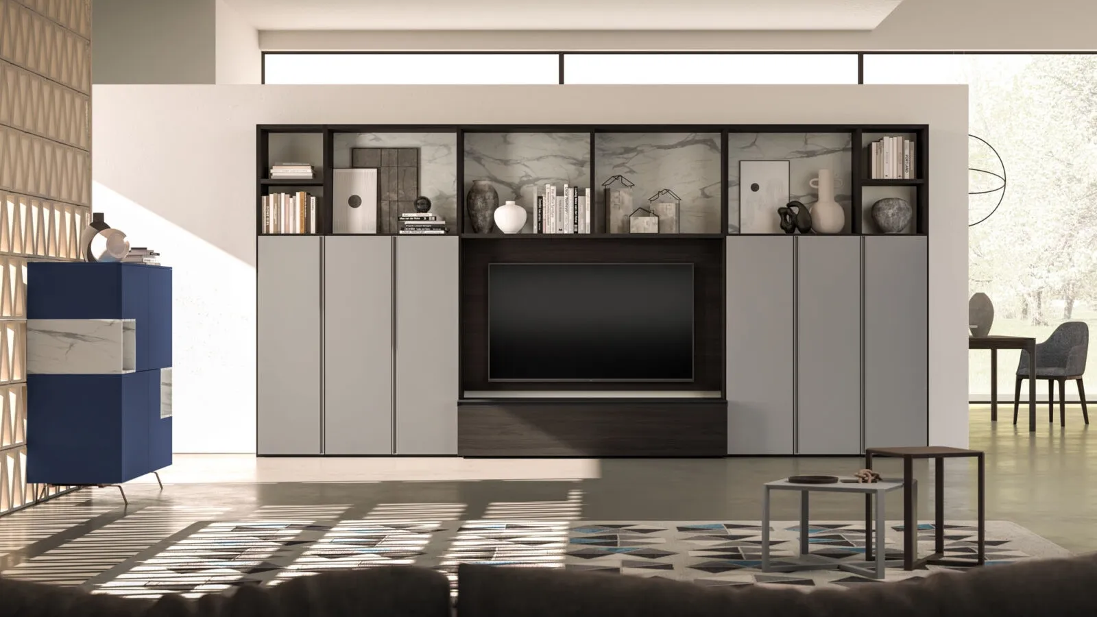 La Parete Attrezzata Logico Day 27 di Orme nell'immagine è una tra le più belle soluzioni d’arredo sul mercato: grandi doti di componibilità e le diverse opportunità di progettazione la rendono funzionale ed esteticamente gradevole. Orme offre a catalogo inediti modelli di mobili soggiorno, diversi per stile e conformazioni, texture e componenti: scopri in negozio l'Arredamento Casa dei migliori produttori. I mobili soggiorno in laccato opaco dalle linee moderne come il modello nell'immagine sono veramente eclettici e capaci di arredare la zona giorno usufruendo al meglio di ogni angolo. Lasciati ispirare da un ricco catalogo di mobili per la zona giorno e potrai trovare la parete attrezzata che fa per te. Poiché il living deve essere uno spazio ben organizzato e bello da vedere, sono molto utili alcuni mobili belli e pratici come le Pareti Attrezzate.