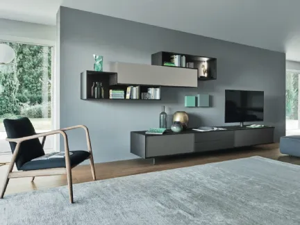 Vuoi progettare un living dinamico e operativo? Ti offriamo la parete attrezzata Lampo L6C15 Sangiacomo dalle linee decise moderne.