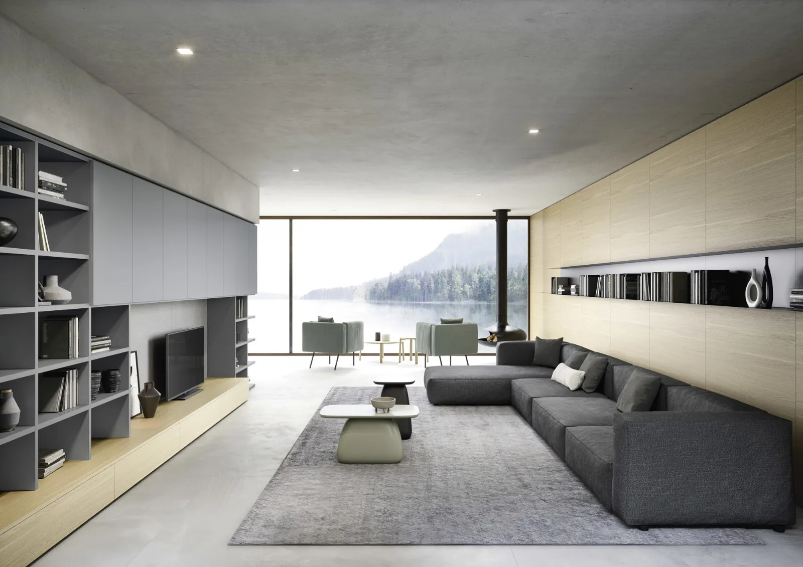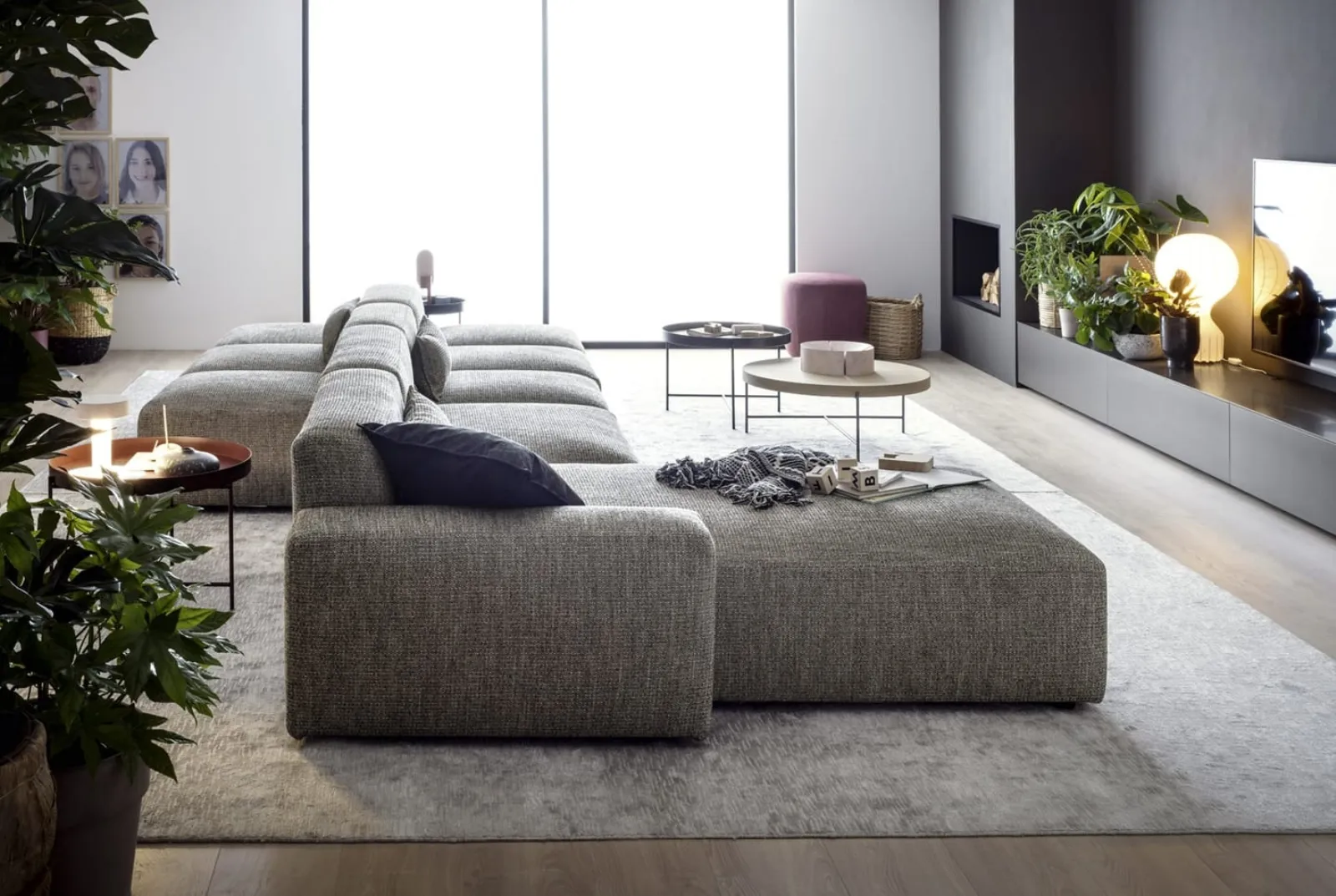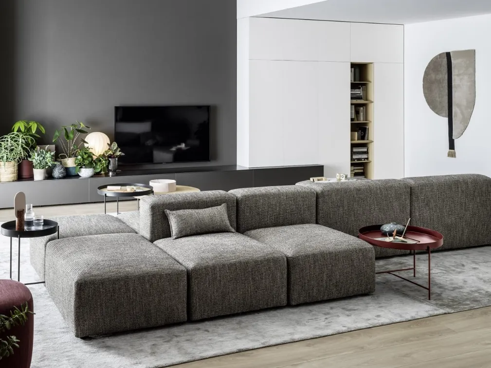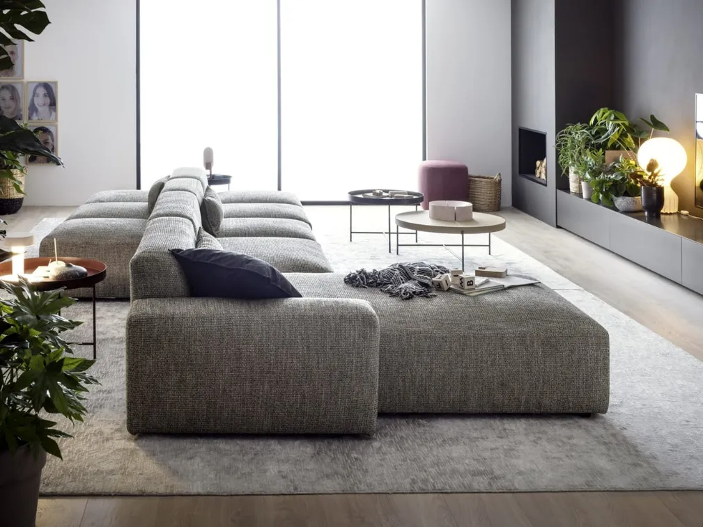 Salotti e divani con penisola Novamobili: ti offriamo il modello Avenue in tessuto per valorizzare il living.