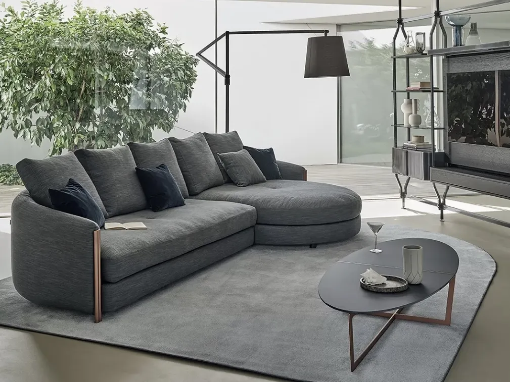 Salotti e divani con penisola Bontempi: ecco a te il modello Bonnie in tessuto per completare il soggiorno.