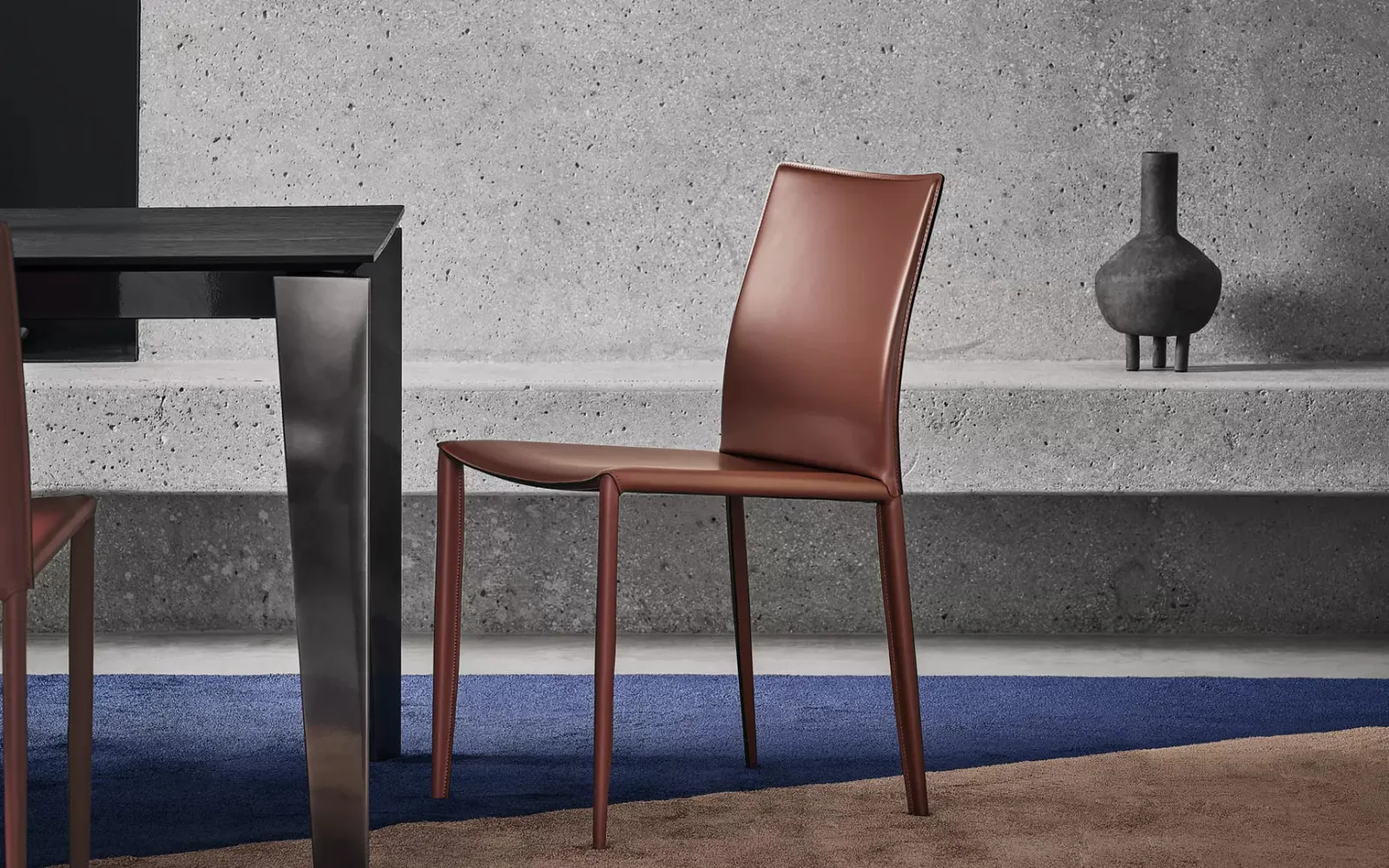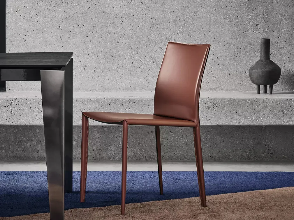 Con questa sedia Linda Bontempi in cuoio, una delle nostre sedute fisse moderne, potrai valorizzare i tuoi interni.