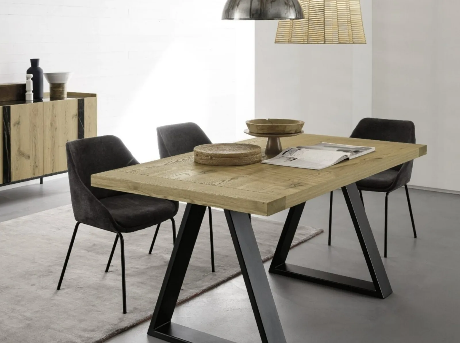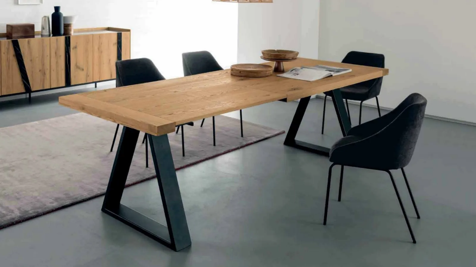 Tavolo con gambe in metallo nero Mekano di Alta Corte: realizzato in materiali di qualità è contraddistinto dalle linee decise del top e da un basamento ricercato ed elegante. Ideali per dare vita a degli abbinamenti unici con sedie e complementi moderni, i Tavoli allungabili della marca sono soluzioni tra le più originali in commercio, ideali per il soggiorno e la cucina. Se sei alla ricerca di un tavolo da pranzo di grande design, contattaci e ricevi informazioni e preventivi sul modello mostrato in foto. Un modello come quello nell'immagine, in abbinamento alle giuste sedie, saprà arricchire lo stile delle stanze di casa dedicate per eccellenza alla socializzazione. Il rinomato marchio Alta Corte, specialista nella realizzazione di mobili in legno, ha scelto per la sua serie un'ampia gamma di materiali, forme e tonalità.