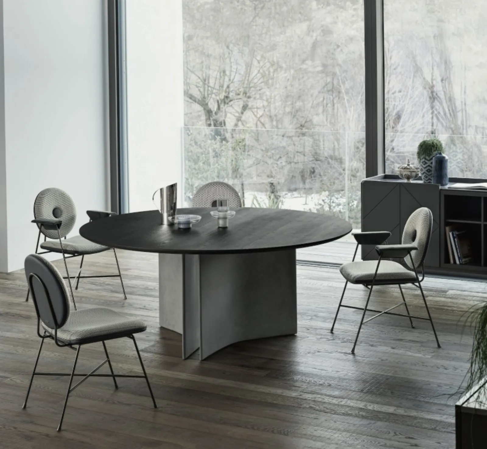 Il rinomato brand Bontempi, leader nella realizzazione di mobili in legno, ha scelto per la sua linea un'infinità di finiture, forme e tonalità. Se sei alla ricerca di un tavolo da pranzo di grande design, contattaci e ricevi informazioni e preventivi sul modello presente in foto. Un modello come quello in foto, in abbinamento alle giuste sedute, saprà arricchire l'atmosfera delle stanze di casa dedicate per eccellenza all'ospitalità. Tavolo rotondo Magnum di Bontempi: realizzato in materiali di prima scelta è connotato dalle linee decise del top e da un basamento elegante e sofisticato. Ideali per dare vita a degli accostamenti unici con sedute e complementi moderni, i Tavoli fissi del brand sono soluzioni tra le più belle in commercio, ideali per il living e la zona cucina.