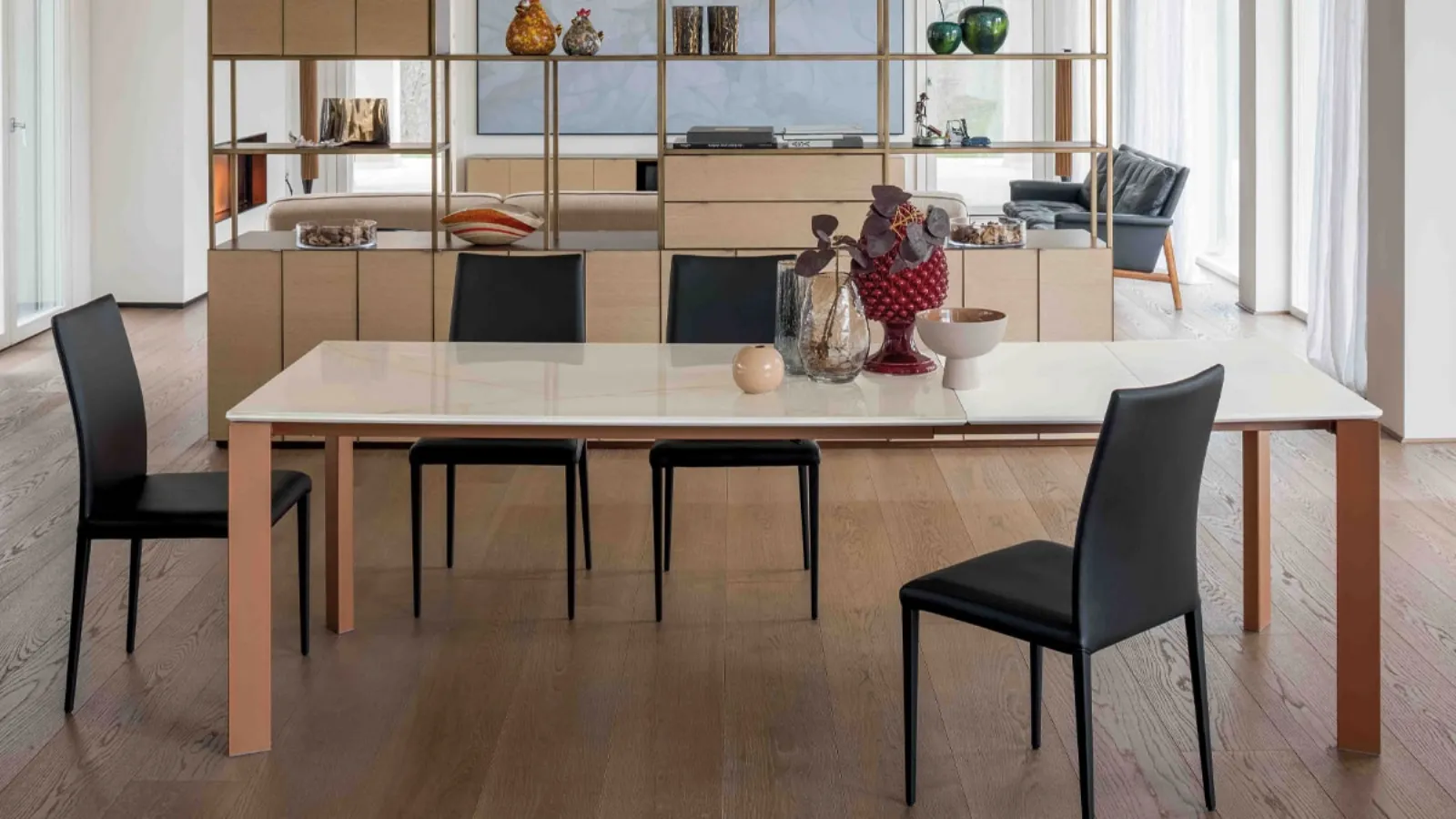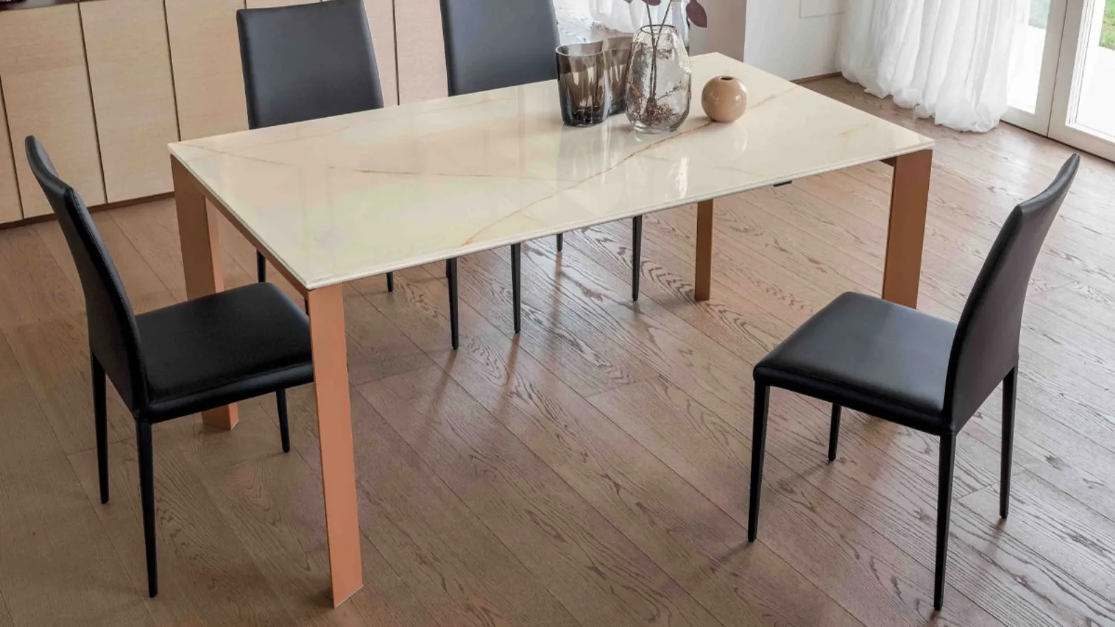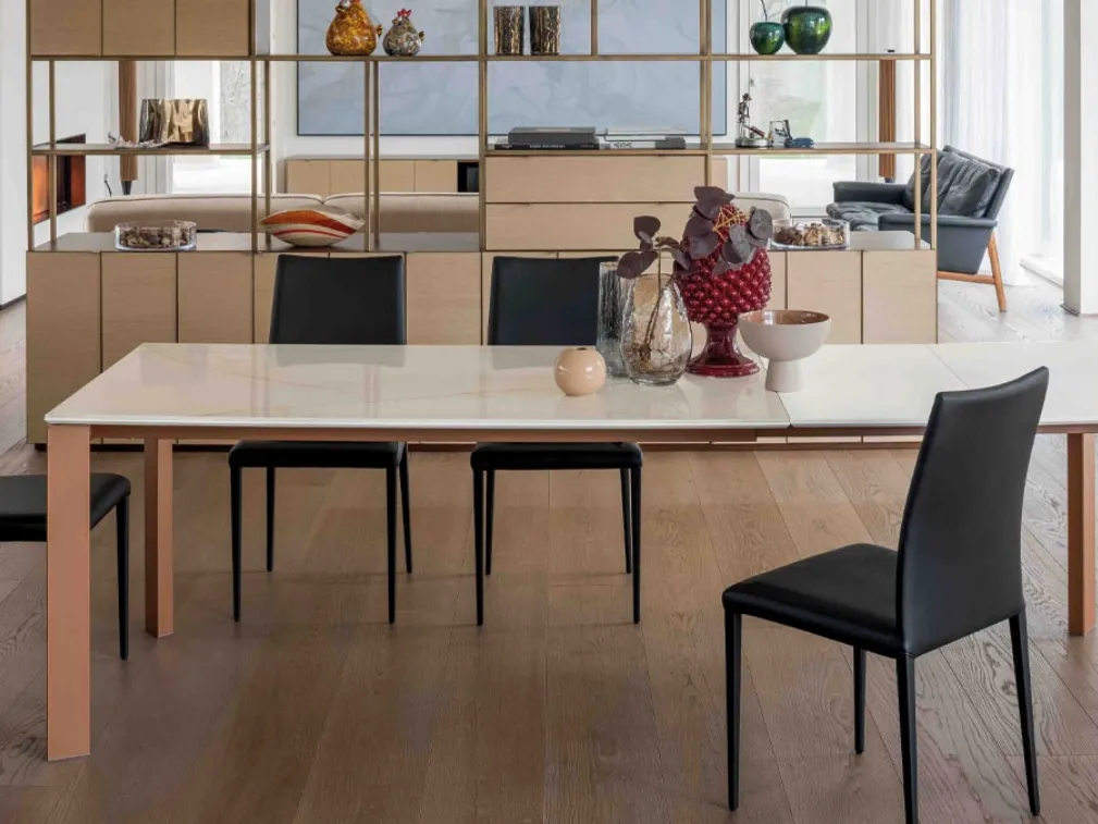 Se desideri tavoli moderni da pranzo, scopri i modelli allungabili di Altacom: clicca e scopri il modello Teorema in ceramica.