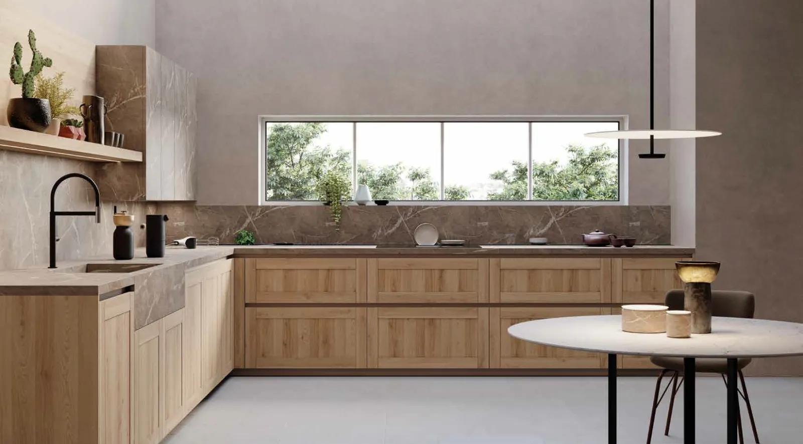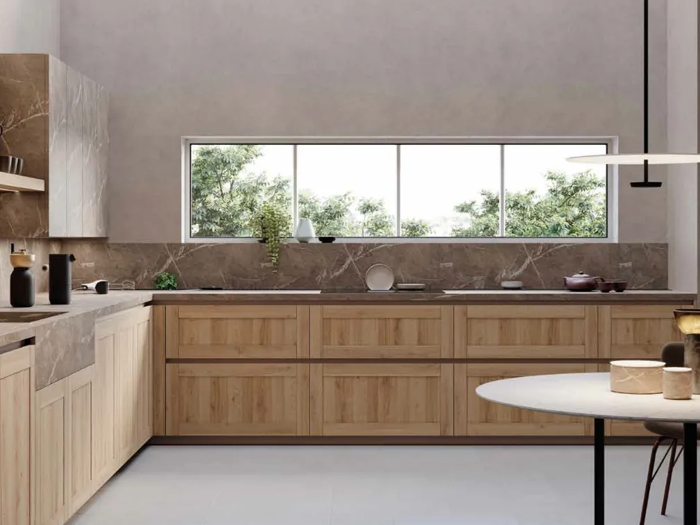 Cerchi una cucina Zecchinon Cucine? Il modello K105 07 in legno ti attende nel nostro negozio di Cucine Design ad angolo.