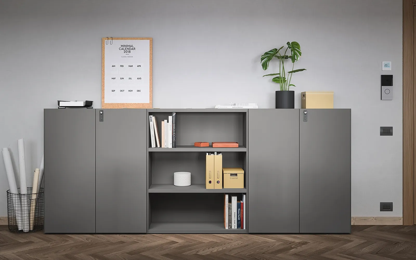 Vuoi progettare l'ambiente lavorativo? Eccoti varie proposte di armadi archivio in melaminico, come il modello Armadio Archivio 04C di Cinquanta3.