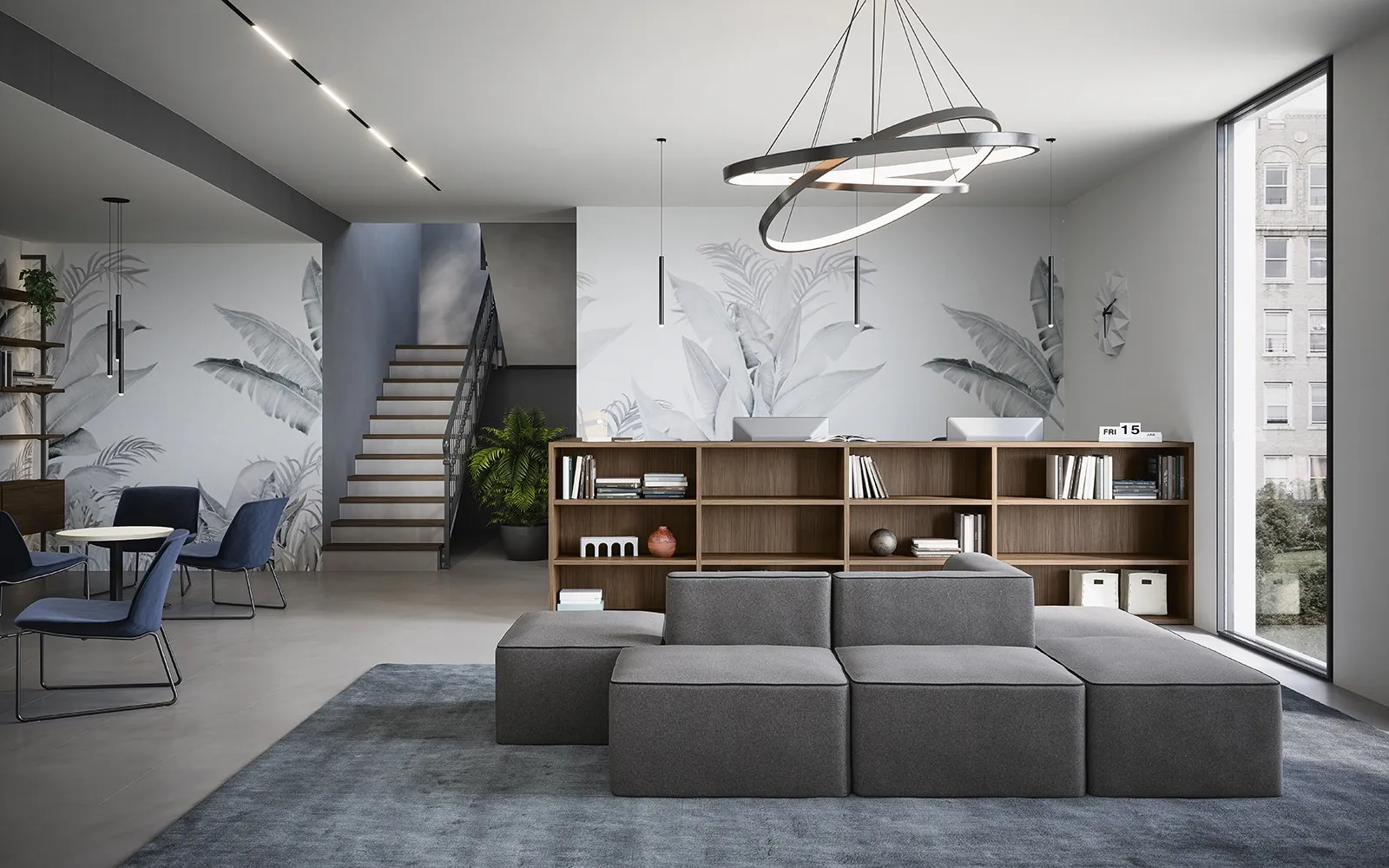 Se vuoi ultimare l'ambiente lavorativo, ti presentiamo il modello Bancone Reception 14B di Cinquanta3 tra differenti soluzioni di banconi reception.