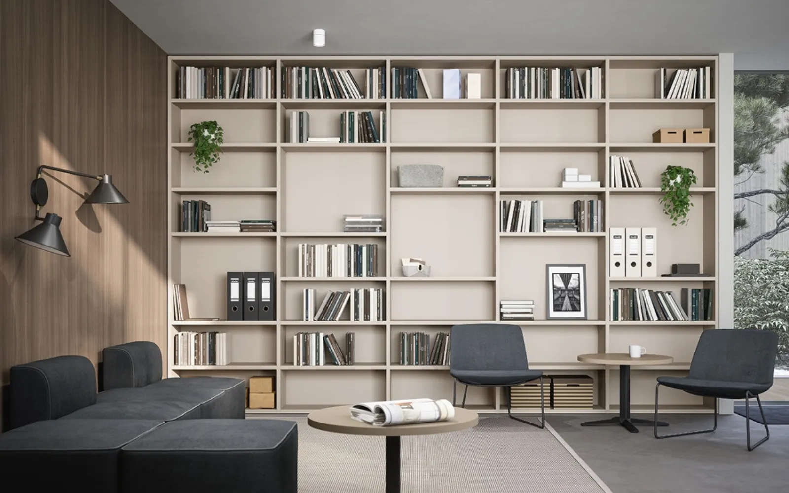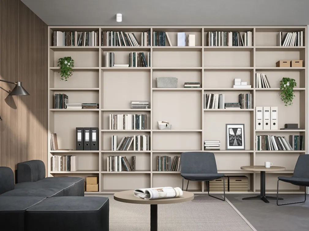 Vuoi allestire gli spazi di lavoro? Eccoti differenti proposte di librerie per ufficio in melaminico, come il modello Libreria 07A di Cinquanta3.
