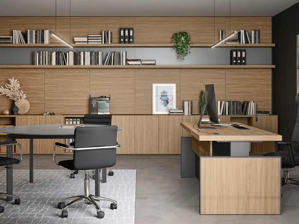 La proposta in foto, tra i diversi modelli di librerie per ufficio firmati Cinquanta3, darà personalità e eleganza agli spazi, attrezzandoli coniugando logica e coerenza. Dai forma al tuo spazio lavorativo con soluzioni di librerie per ufficio in melaminico dell'azienda: la completa collezione di mobili e complementi per il tuo ufficio ti attende in negozio. In showroom potrai vedere dal vivo tutte le più esclusive composizioni arredative di Arredo Ufficio in melaminico disponibili sul mercato, sempre di qualità eccellente. Mobile Ufficio Libreria a muro 01A di Cinquanta3: appartiene alla scelta quasi infinita di arredi per gli spazi lavorativi del marchio, leader nel comparto dell’Arredo Ufficio. Cinquanta3 presenta arredi di qualità eccellente, sempre capaci di soddisfare svariate richieste per quanto riguarda sia l'estetica che la praticità.