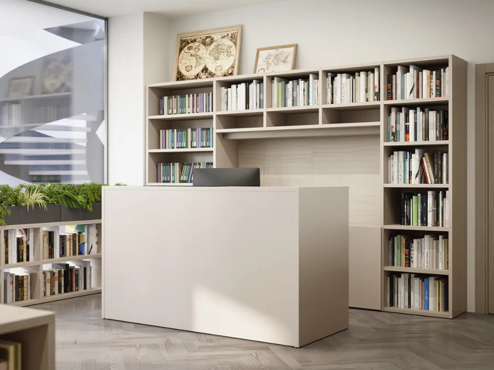 In showroom scoprirai le composizioni di Arredo Ufficio con librerie per ufficio in melaminico dei più noti brand per completare lo spazio con razionalità e logica. Le soluzioni arredative che proponiamo nel nostro showroom sono il frutto della pluriennale competenza e dedizione delle aziende leader nel campo, come Cinquanta3. La scelta dell'Arredo Ufficio migliore per le proprie necessità è imprescindibile se si desidera ricreare uno spazio versatile e ben organizzato. Questa proposta, tra molteplici librerie per ufficio in melaminico di Cinquanta3, è su misura per completare l'arredo degli ambienti lavorativi con funzionalità. Libreria a ponte 17A di Cinquanta3: su misura per risolvere svariate problematiche, difatti ottimizza tutti gli spazi disponibili arricchendone l'estetica.