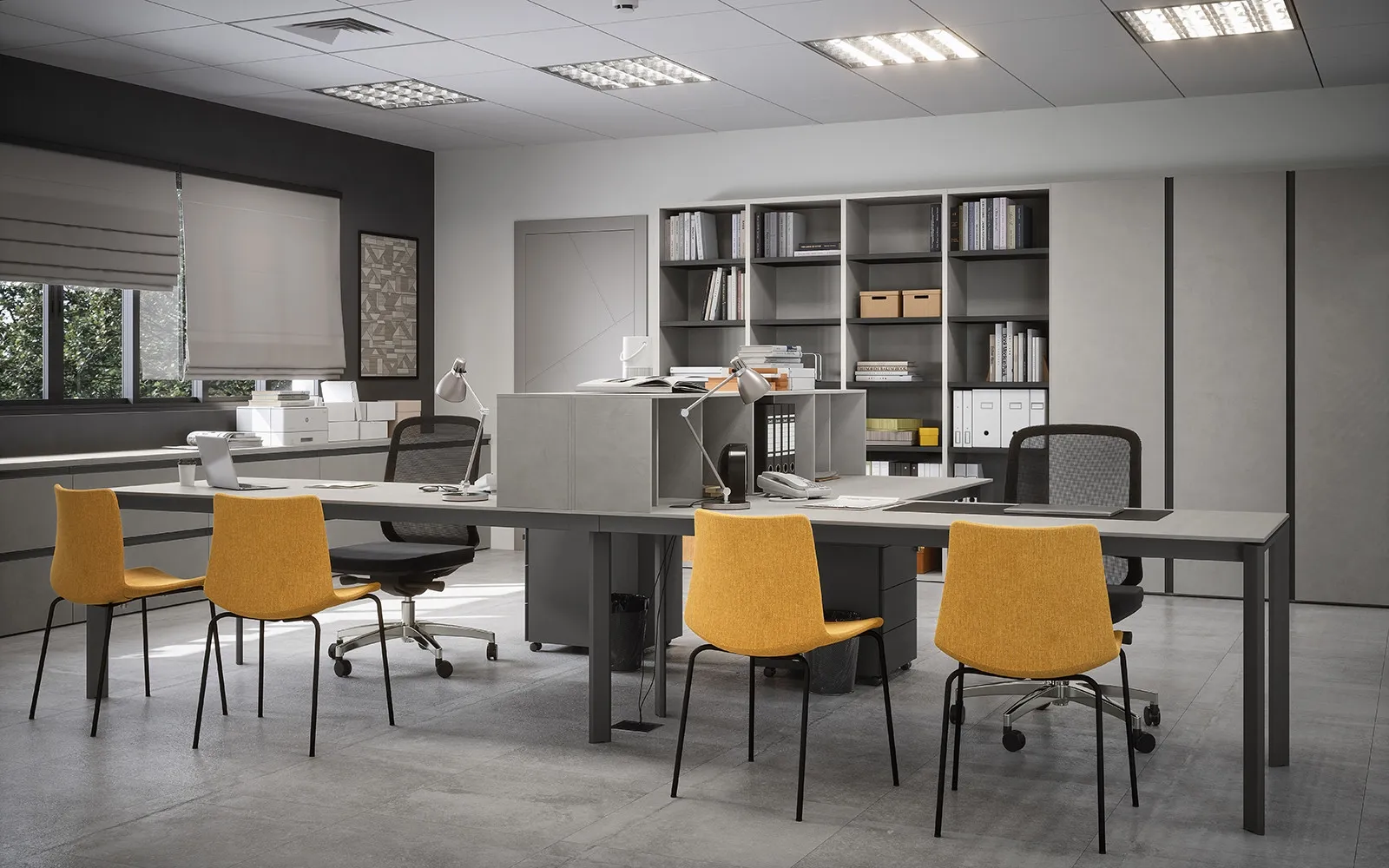 Vuoi progettare uffici operativi e direzionali? Ecco qui differenti proposte di scrivanie operative in melaminico, come il modello Scrivania Operativa 04A di Cinquanta3.
